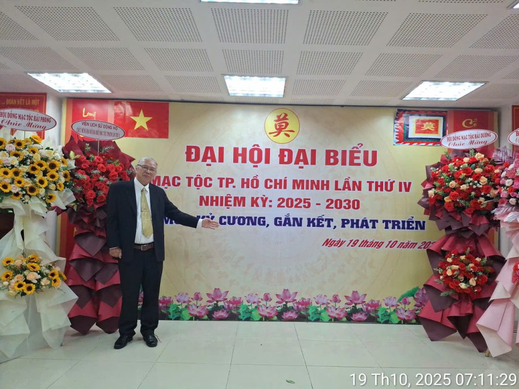 Ngày 19/10/2025, tại Nhà khách T67 (TP.HCM), Đại hội Đại biểu Mạc Tộc TP.HCM Khóa IV, nhiệm kỳ 2025 – 2030 đã long trọng diễn ra trong không khí đoàn kết, nghĩa tình và hướng về cội nguồn. Đại hội có sự tham dự của các đại diện Hội đồng Mạc Tộc Việt Nam, Viện Lịch […]