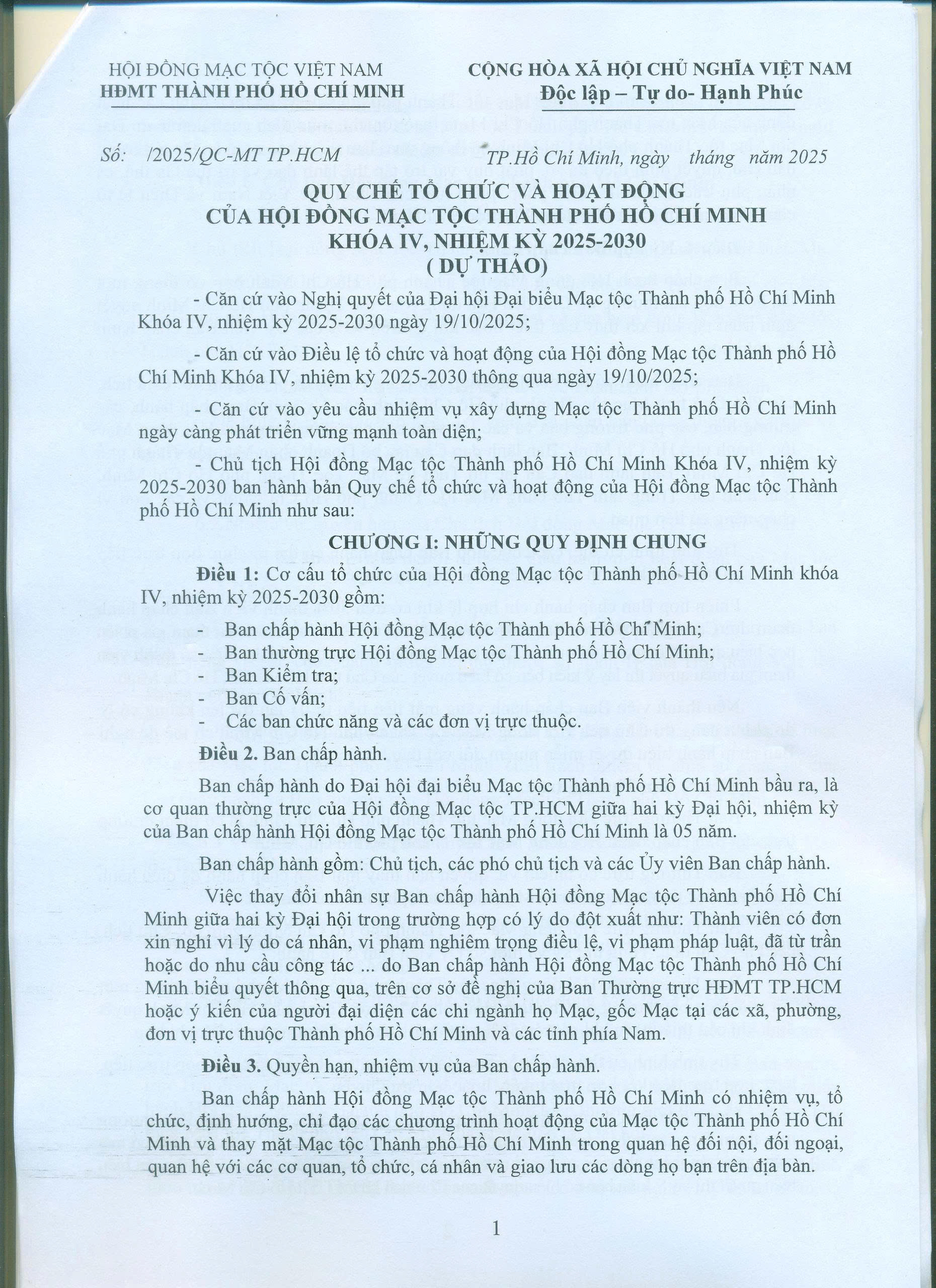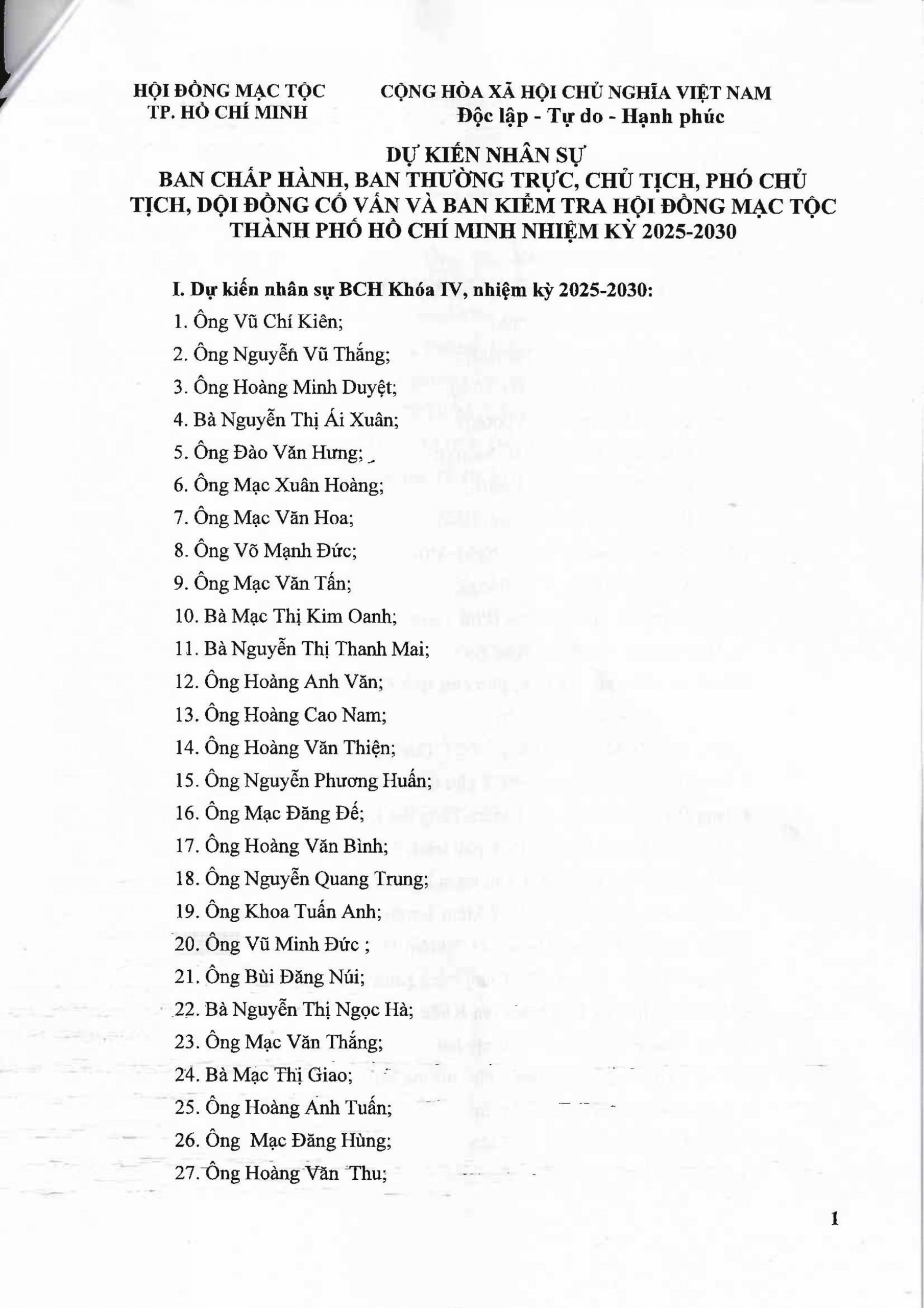 – Ông Vũ Chí Kiên được tín nhiệm bầu làm Chủ tịch Hội đồng Mạc Tộc TP.HCM khóa IV.