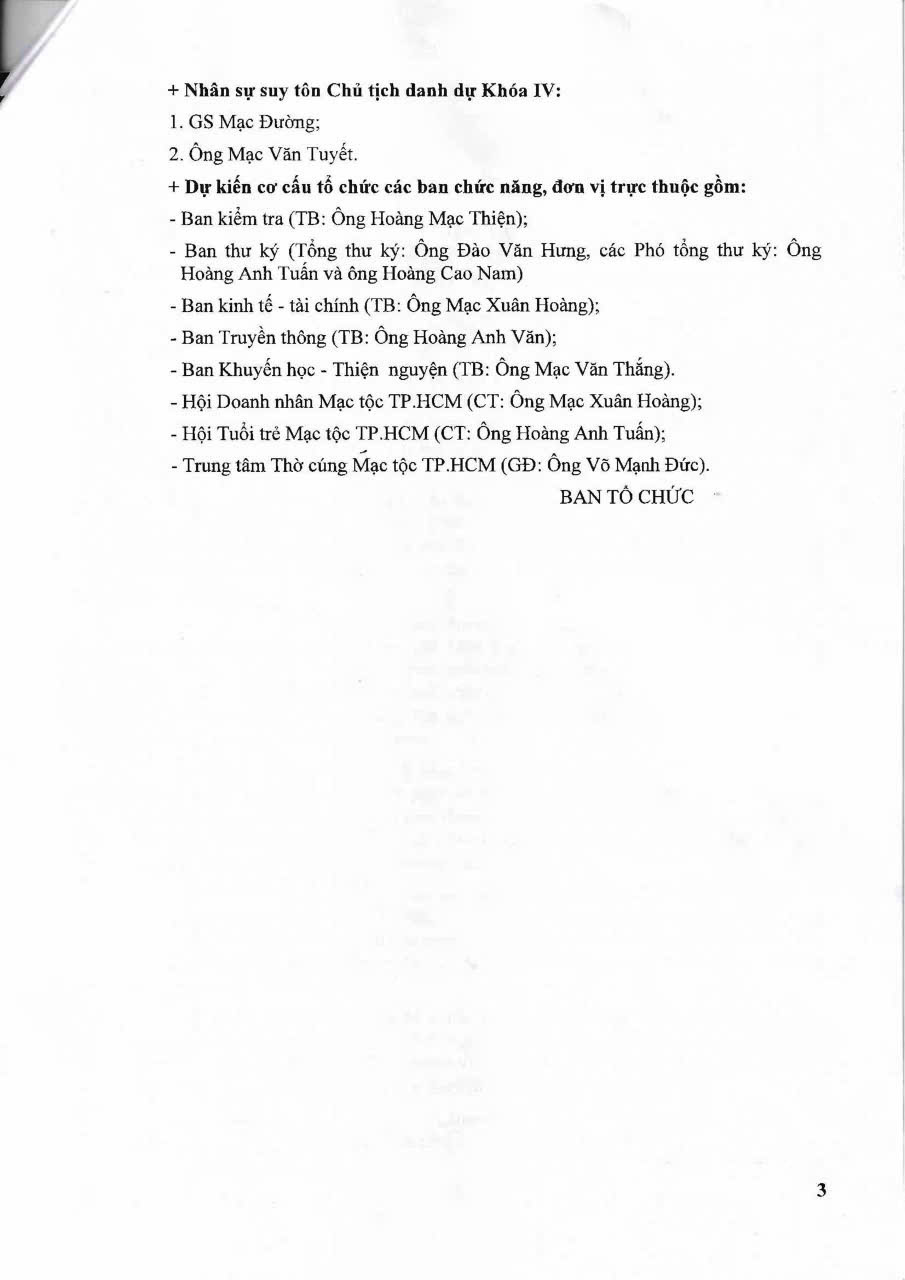 Với niềm tự hào về truyền thống của tổ tiên cùng khát vọng vươn lên của các thế hệ con cháu hôm nay, Hội đồng Mạc Tộc TP.HCM Khóa IV hứa hẹn sẽ tiếp tục lan tỏa những giá trị nhân văn, trí tuệ và nghĩa tình của dòng họ Mạc, góp phần bồi đắp khối đại đoàn kết dân tộc và giữ gìn bản sắc văn hóa Việt Nam.