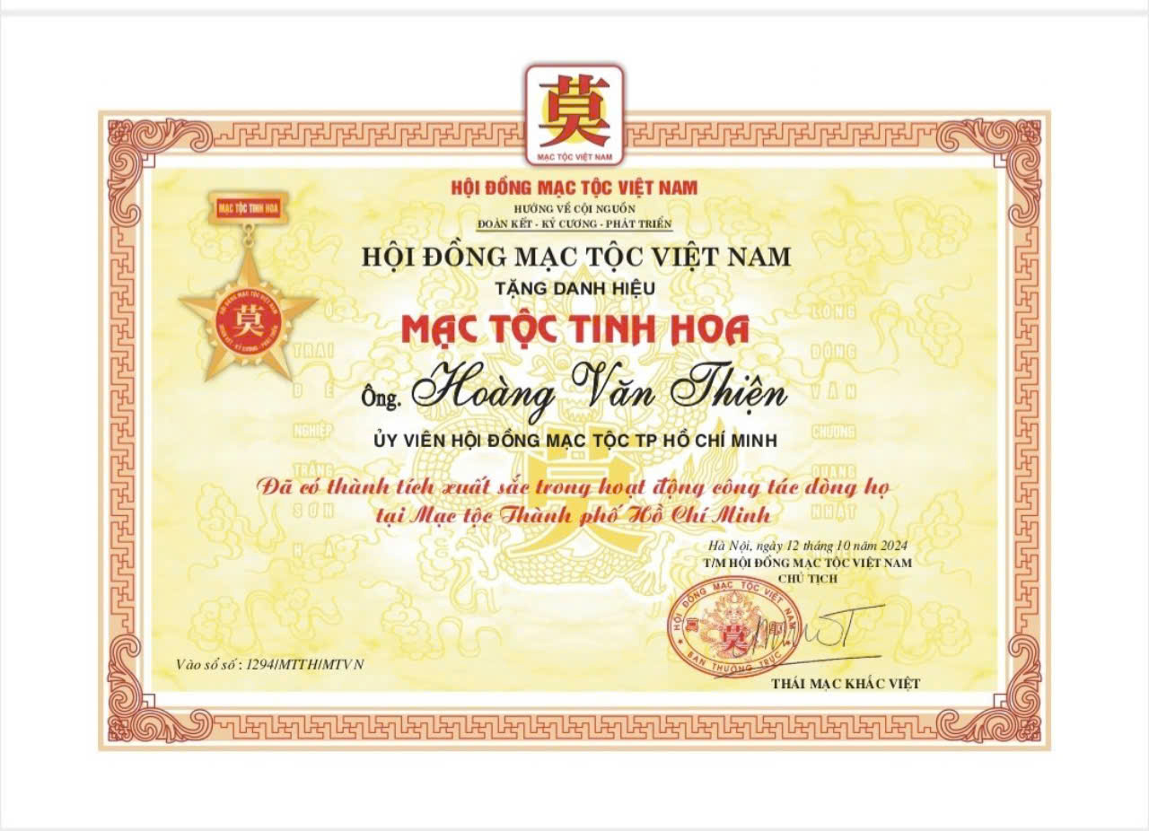 Tại Đại hội đại biểu Toàn quốc Mạc Tộc Việt Nam khóa IV, Hội đồng Mạc tộc TP.HCM đã được tặng cờ “Xuất sắc” của Hội đồng Mạc tộc Việt Nam, ông Võ Mạnh Đức và ông Hoàng Mạc Thiện được trao danh hiệu Mạc Tộc Tinh Hoa, chúc mừng ông Đào Văn Hưng vào BCH HĐMT Việt Nam, UV – Ban Thanh Tra.