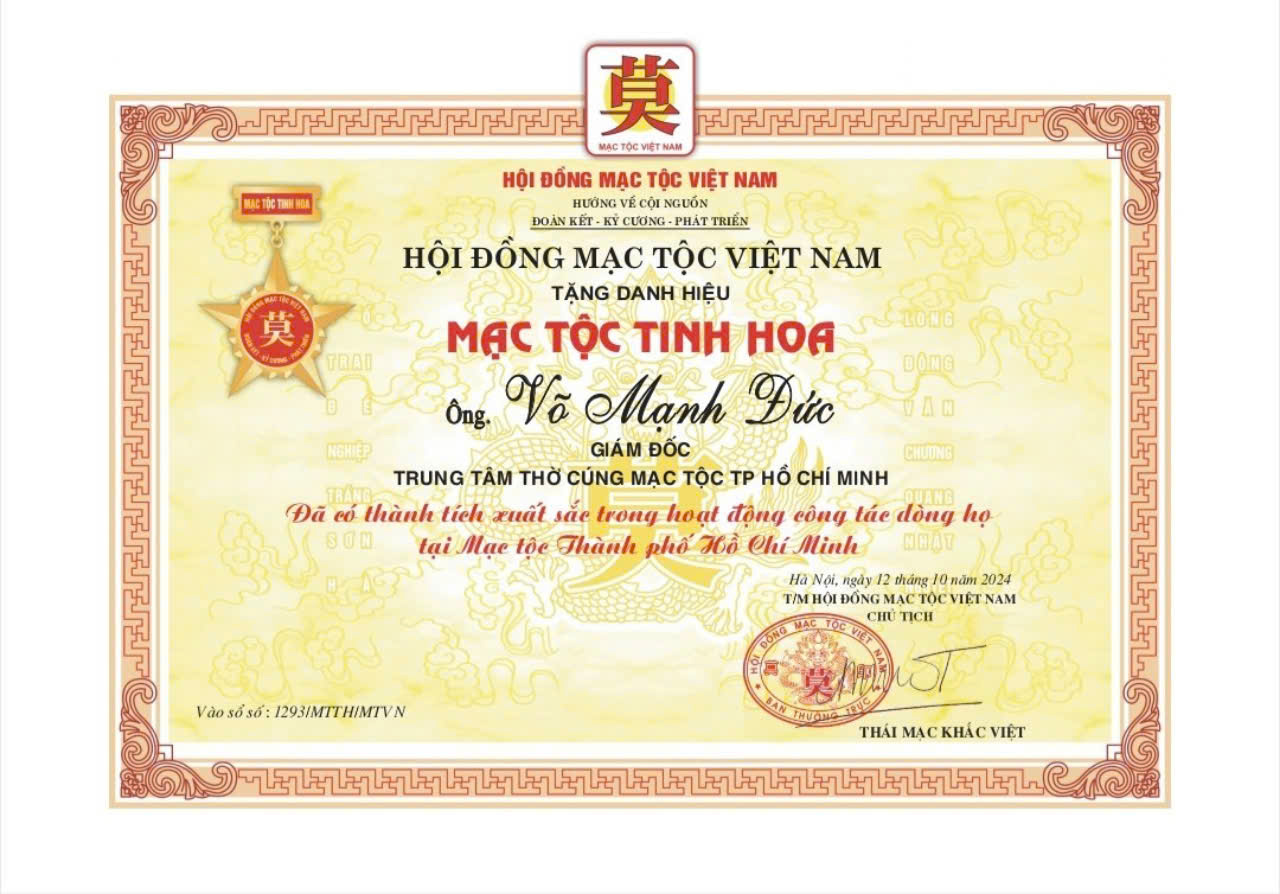 – Ông Võ Mạnh Đức – UV HĐMT TP.HCM / Giám đốc Trung Tâm Thờ Cúng Mạc Tộc TP.HCM