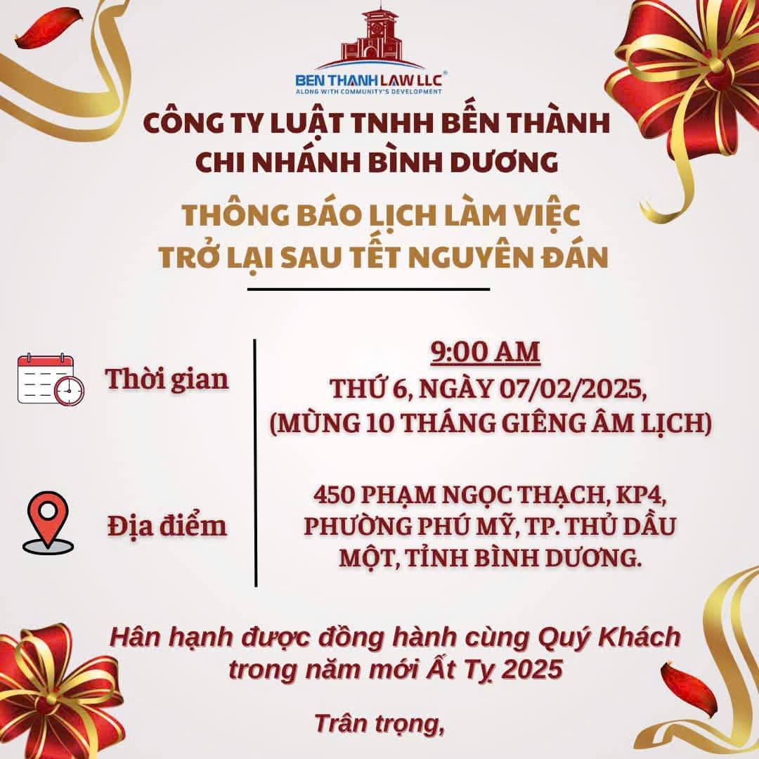 Địa điểm thứ hai, đoàn ghé Công ty Luật TNHH Bến Thành, chi nhánh Bình Dương vào lúc 10h30 và tham dự Lễ khai Xuân chi nhánh Bình Dương do ông Đào Văn Hưng là Trưởng chi nhánh, chi nhánh tọa lạc tại số 450 Phạm Ngọc Thạch, phường Phú Mỹ, TP. Thủ Dầu Một, tỉnh Bình Dương.