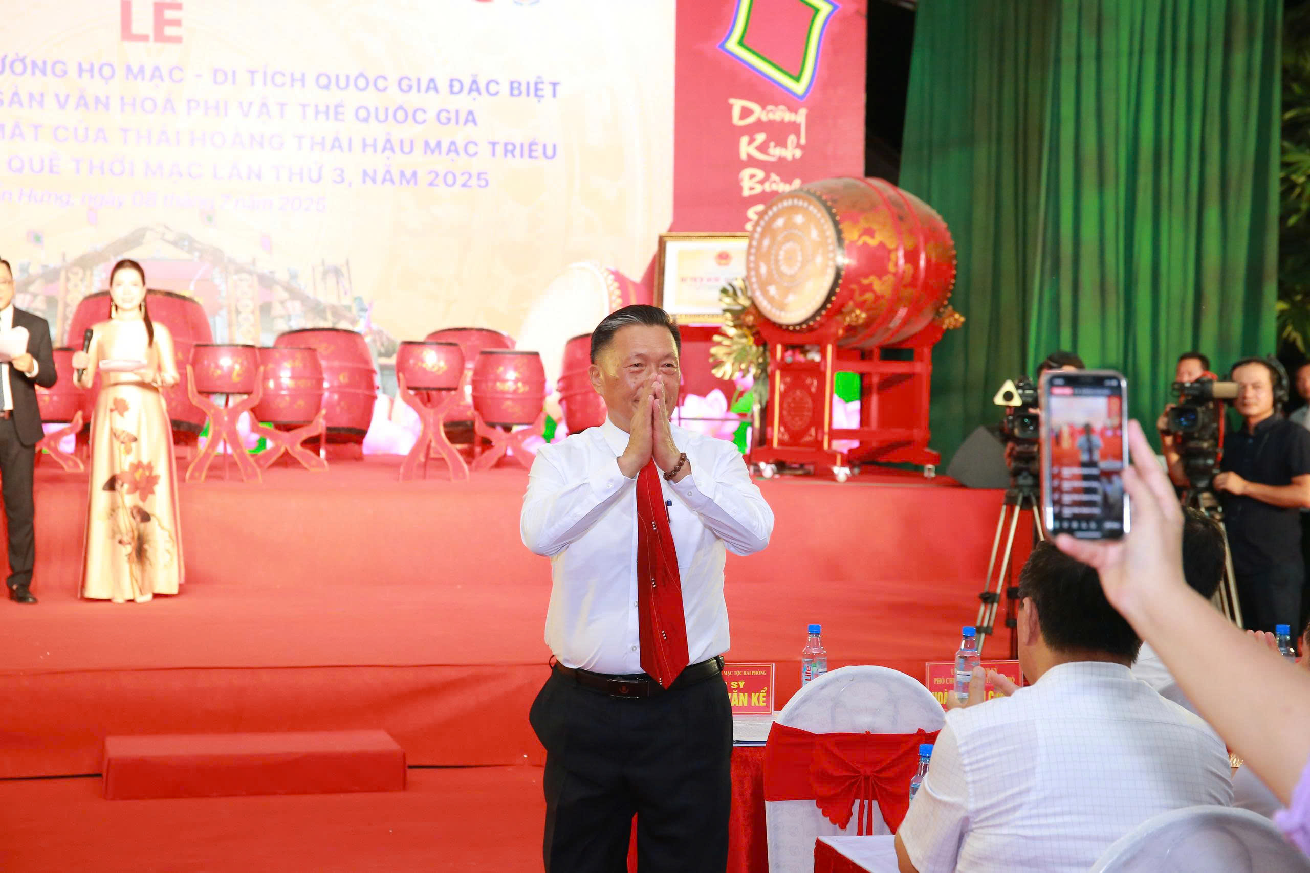Đặc biệt, lễ khai mạc cũng mở màn cho “Chợ quê thời Mạc” lần thứ 3, diễn ra từ ngày 8 đến 12-7-2025, quy tụ hơn 70 gian hàng OCOP và đặc sản địa phương của thành phố Hải Phòng mới và con cháu họ Mạc từ khắp vùng miền. Không gian chợ tái hiện sinh hoạt truyền thống, trò chơi dân gian, trình diễn nghệ thuật dân tộc, trải nghiệm ẩm thực đặc sắc – tất cả tạo nên một bức tranh sống động về văn hóa dân gian thời Mạc. Tiến sĩ Hoàng Văn Kể đã nổi hồi trống khai hội, chính thức mở màn cho những ngày hội đầy bản sắc.