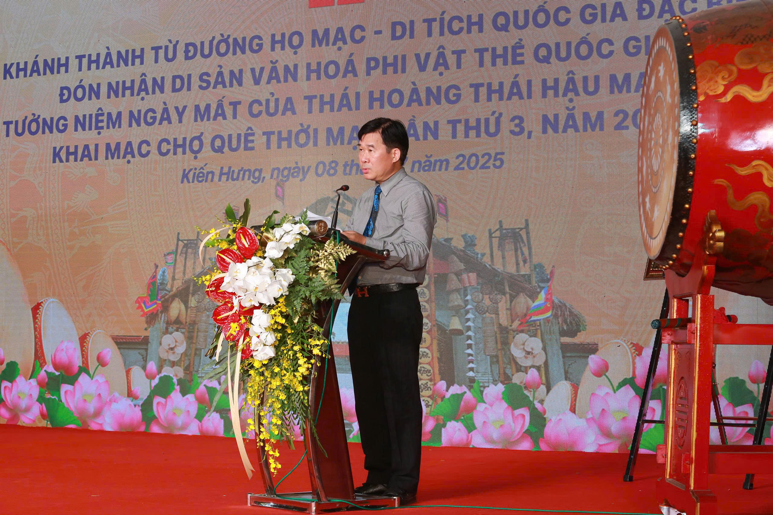 Mở đầu buổi lễ là màn trống hội rộn ràng mang tên “Hào khí non sông” do Nhà hát Sân khấu Truyền thống Hải Phòng và Nhà hát Chèo xứ Đông phối hợp biểu diễn. Phát biểu khai mạc, Tiến sĩ Hoàng Văn Kể, nguyên Phó Chủ tịch UBND thành phố, Chủ tịch Hội đồng Mạc tộc Hải Phòng, Trưởng ban tổ chức “Chợ quê thời Mạc” lần thứ 3, nhấn mạnh ý nghĩa sâu sắc của sự kiện trong việc tri ân tiền nhân, phát huy giá trị di sản văn hóa lịch sử, đồng thời khẳng định vai trò, công lao to lớn của Thái tổ Mạc Đăng Dung và vương triều Mạc đối với tiến trình lịch sử dân tộc.