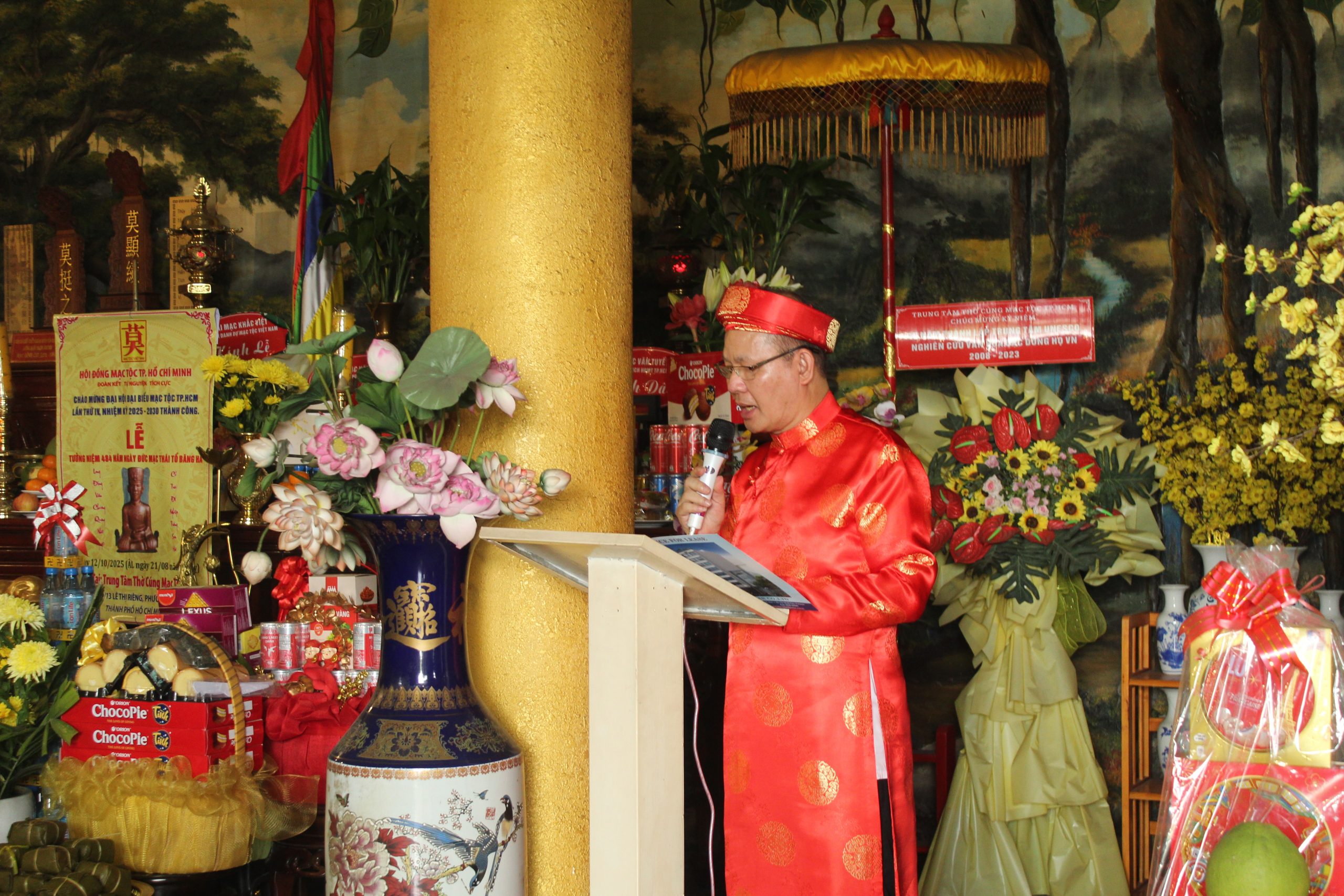 Sáng ngày 12/10/2025 (nhằm ngày 21/08 năm Ất Tỵ), trong không khí trang nghiêm và thành kính, Trung Tâm Thờ Cúng Mạc Tộc TP. Hồ Chí Minh long trọng tổ chức Lễ Cúng Giỗ lần thứ 484 ngày Đức Thái Tổ Mạc Đăng Dung băng hà. Đây là dịp để toàn thể bà con họ Mạc, gốc Mạc đang sinh sống, làm việc tại TP.HCM và các tỉnh phía Nam cùng nhau tưởng niệm công đức tổ tiên, ôn lại truyền thống dòng tộc, và vun đắp tinh thần đoàn kết, hướng về cội nguồn.