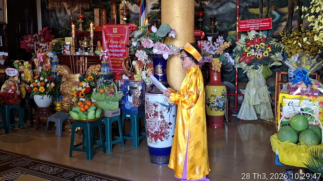 Trong phần nghi lễ chính, bà Trần Huỳnh Linh đã đọc tiểu sử Viễn Tổ, giúp con cháu hiểu sâu sắc hơn về thân thế, sự nghiệp và những đóng góp lớn lao của tổ tiên. Tiếp nối là phần đọc chúc văn do bà Đặng Thị Ngọc Yến thực hiện, thể hiện lòng thành kính, biết ơn và cầu mong phúc lành cho toàn thể dòng tộc. Đặc biệt, ông Võ Mạnh Đức đã thực hiện nghi thức quỳ đọc văn cúng, thể hiện sự tôn kính sâu sắc đối với Viễn Tổ.