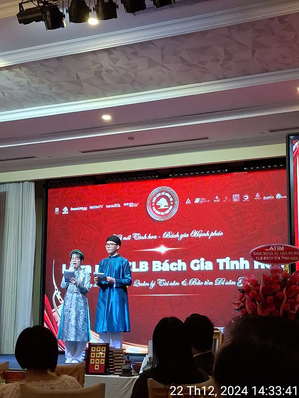 Chiều ngày 22/12/2024, lễ ra mắt Câu lạc bộ Bách Gia Tinh Hoa thuộc Viện Lịch Sử Dòng Họ và cuốn sách Gia Phả Học Tinh Hoa, đánh dấu bước ngoặt quan trọng trong việc kết nối và bảo tồn văn hóa lịch sử dòng họ Việt Nam, đại diện HĐMT TP.HCM có ông Võ Ân Phước – PCT / PTTK tham dự.