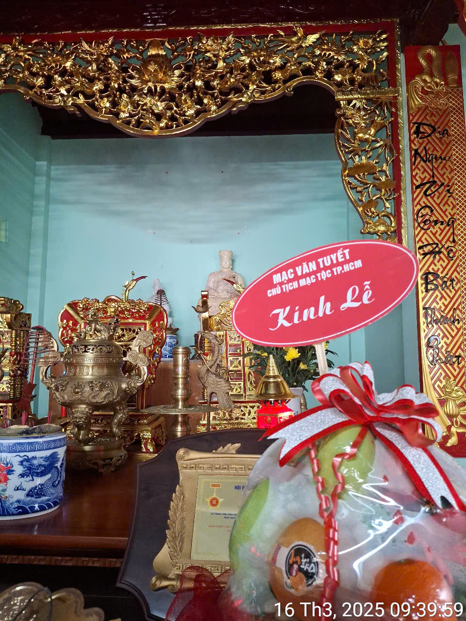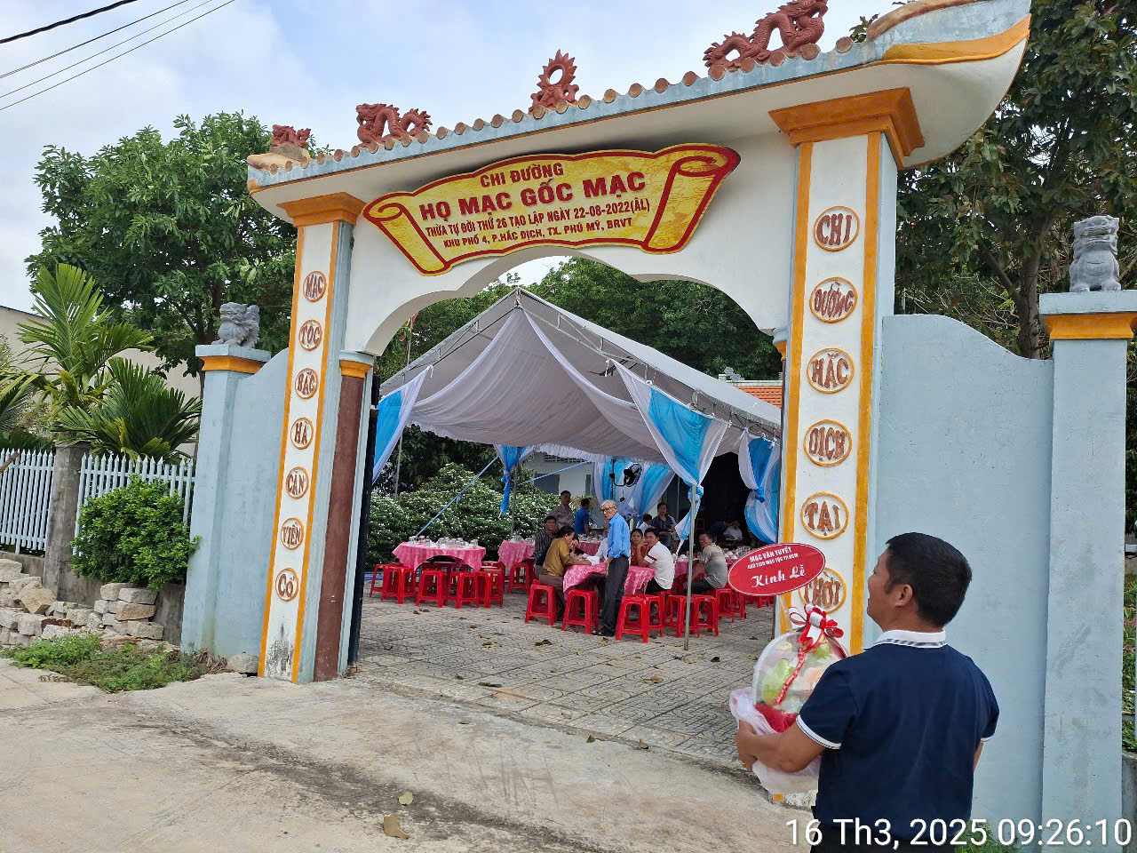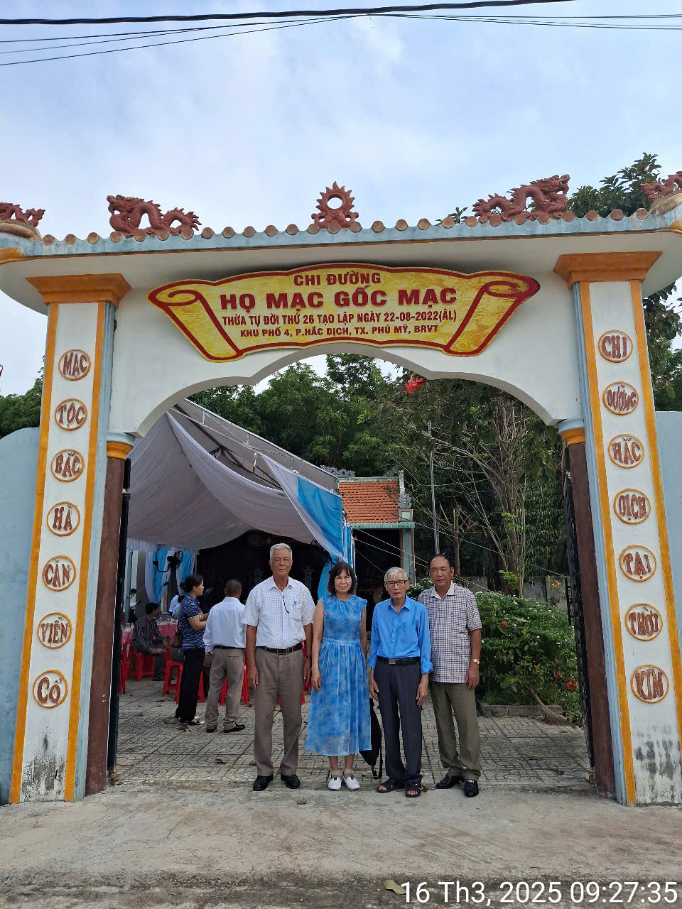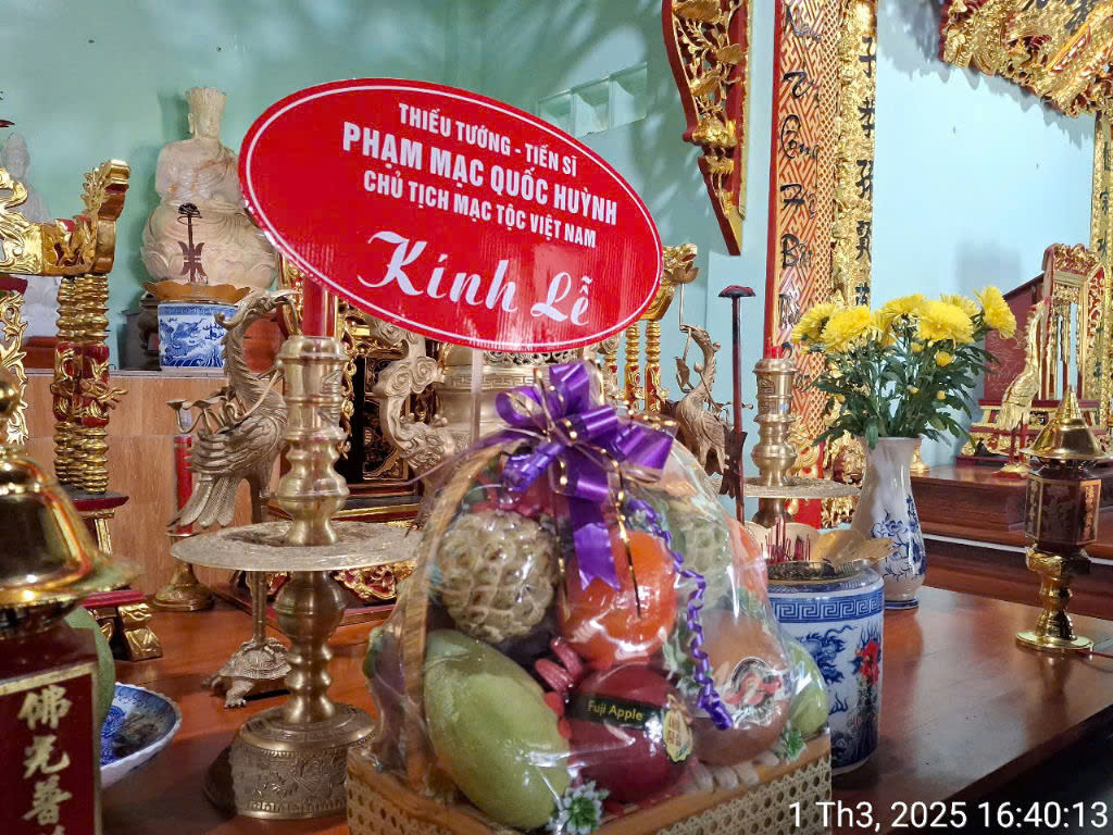 Ngày 16/03/2025, Hội đồng Mạc Tộc Bà Rịa – Vũng Tàu tổ chức Lễ cúng giỗ Đức Viễn Tổ Mạc Đĩnh Chi tại Chi đường họ Mạc, gốc Mạc tọa tại Hắc Dịch, Phú Mỹ, Bà Rịa – Vũng Tàu. Theo thư mời, đại diện Hội đồng Mạc Tộc TP.HCM có ông Võ Ân Phước – PCT / PTTK, ông Mạc Xuân Hoàng – Ủy viên cùng bà Vũ Thị Ngọc Hà – Ủy viên tham dự. Đoàn Mạc tộc thành phố dâng một giỏ trái cây cúng tiên tổ, nội dung: Mạc Văn Tuyết – Chủ tịch HĐMT TP.HCM kính lễ.