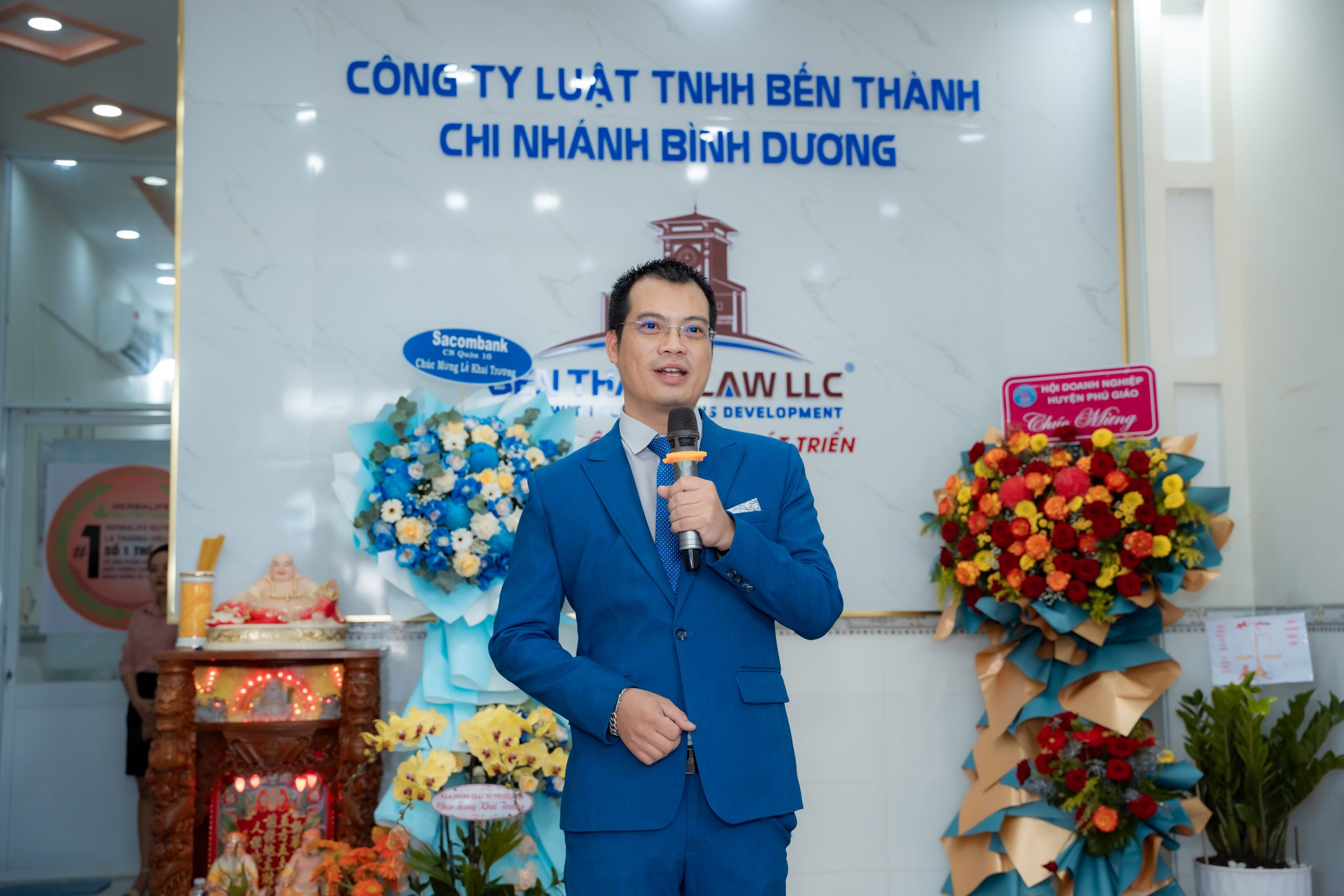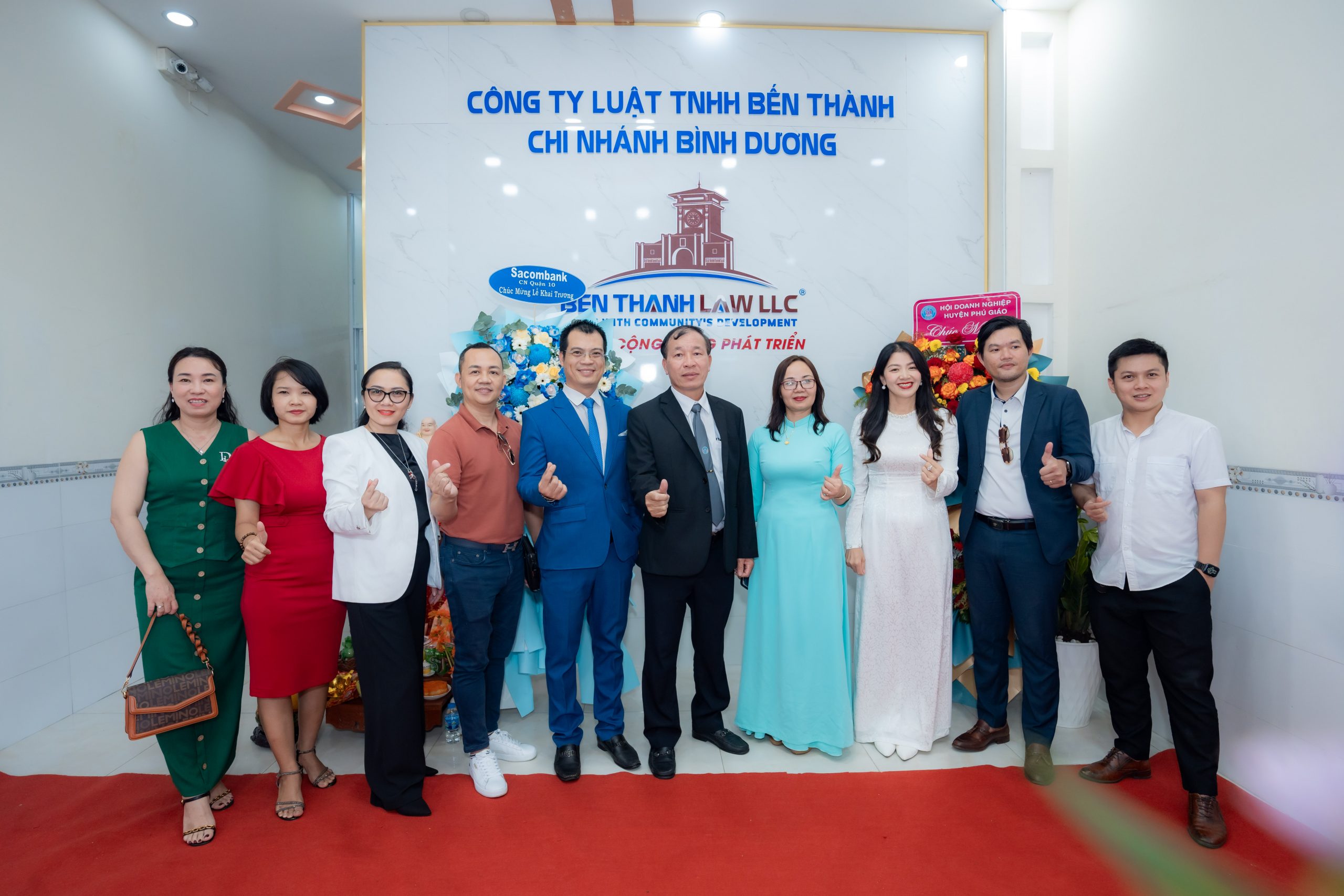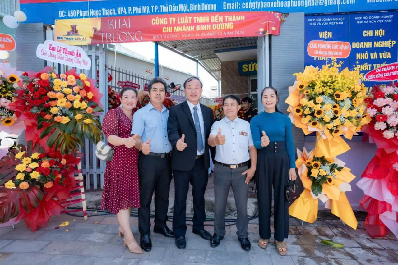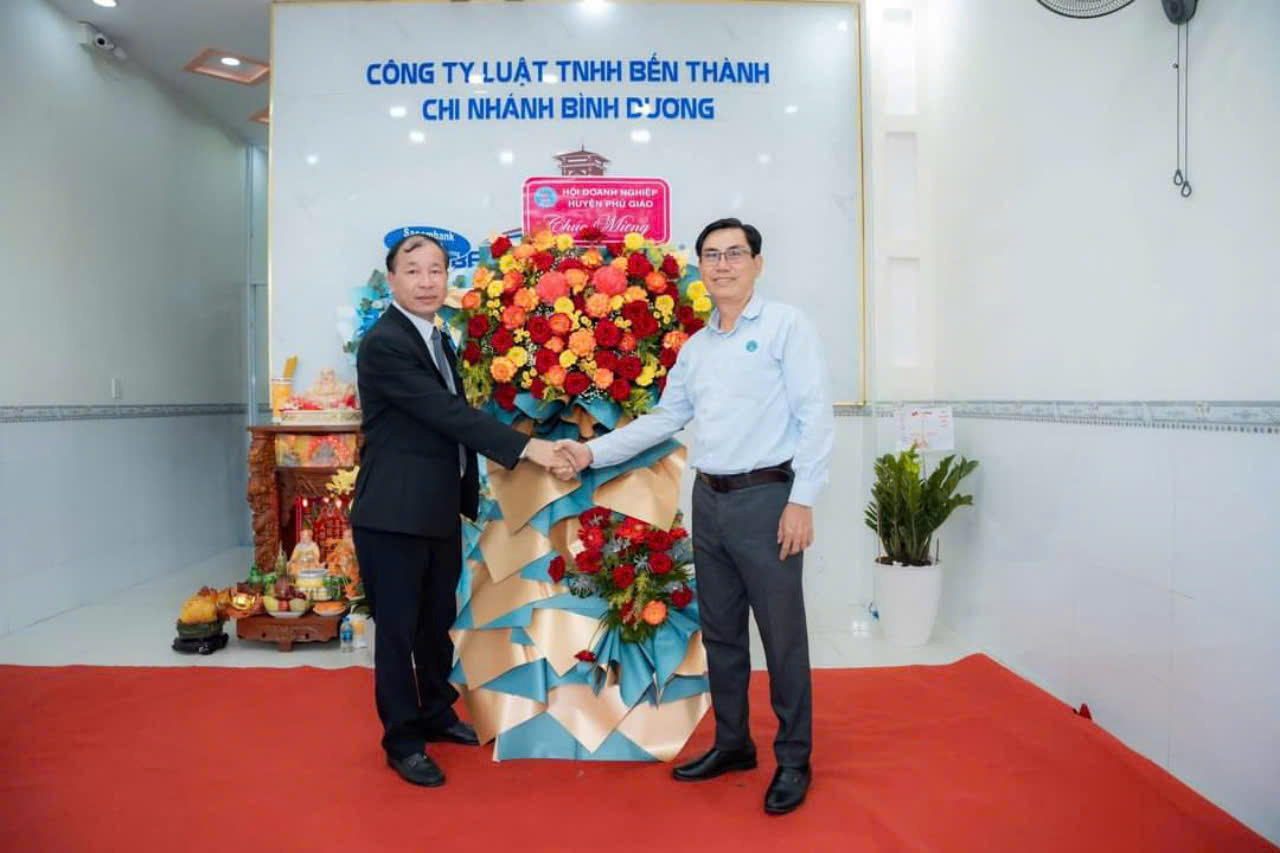 Trường Đại học Bình Dương, Trung tâm Xúc tiến Đầu tư Thành phố Thủ Đức, Sacombank chi nhánh Quận 10, Hội Doanh nghiệp Huyện Phú Giáo, … và nhiều công ty, bạn bè trong ngành luật, đối tác gửi hoa chúc mừng Trưởng chi nhánh của Công ty Luật TNHH Bến Thành do ông Đào Văn Hưng làm giám đốc.